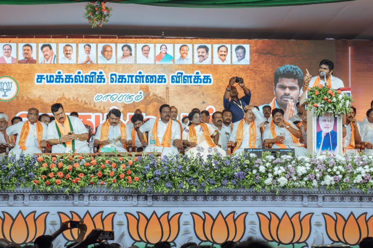 தேசிய கல்விக் கொள்கையை அமல்படுத்த வலியுறுத்தியும், திமுக அரசை கண்டித்தும் திருச்சியில் பொதுக்கூட்டம் நடைபெற்றது. இதில் பேசிய அண்ணாமலை, திமுக அரசு சமமான கல்வியை வழங்க மறுப்பதாகவும், அமைச்சர்கள் தகுதியற்றவர்களாக இருப்பதாகவும் சாடினார்.