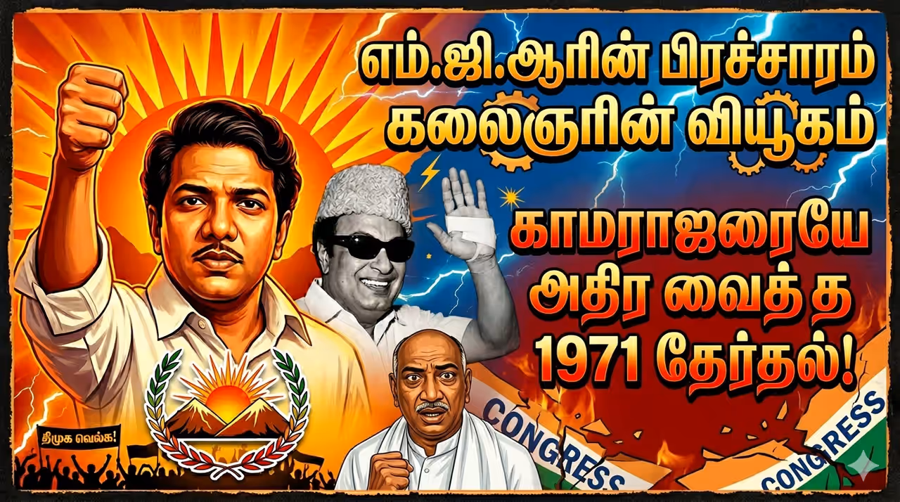 - எம்.ஜி.ஆரின் பிரசாரம் - கலைஞரின் வியூகம்: காமராஜரையே அதிர வைத்த 1971 களம்..! 55 ஆண்டு ரெகார்ட்..