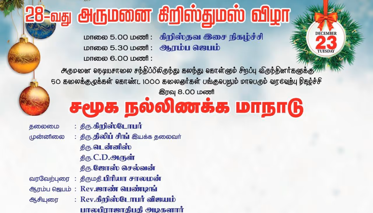 அருமனையில் நடந்த கிறிஸ்துமஸ் விழாவில் ஆதவ் அர்ஜுனா, விஜய் மீது கொலைப்பழி சுமத்த முயன்றதாகவும், ராகுல் காந்தி போன் செய்ததால் ஸ்டாலின் பயந்ததாகவும் கூறினார். விஜய்தான் தமிழகத்தின் எதிர்காலம் என்றும், அதிமுக கூடாரம் காலியாகும் என்றும் பேசினார்.