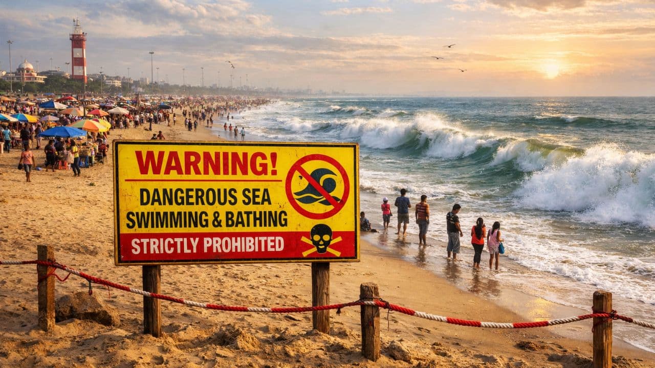 சென்னை மெரினா கடற்கரை, இந்தியாவின் நீளமான கடற்கரையாக இருந்தாலும், அதன் அழகிற்குப் பின்னால் ஒரு ஆபத்து மறைந்துள்ளது. மக்களின் பாதுகாப்பிற்காக கடுமையான கட்டுப்பாடுகள் மற்றும் எச்சரிக்கைகள் விதிக்கப்பட்டுள்ளன.