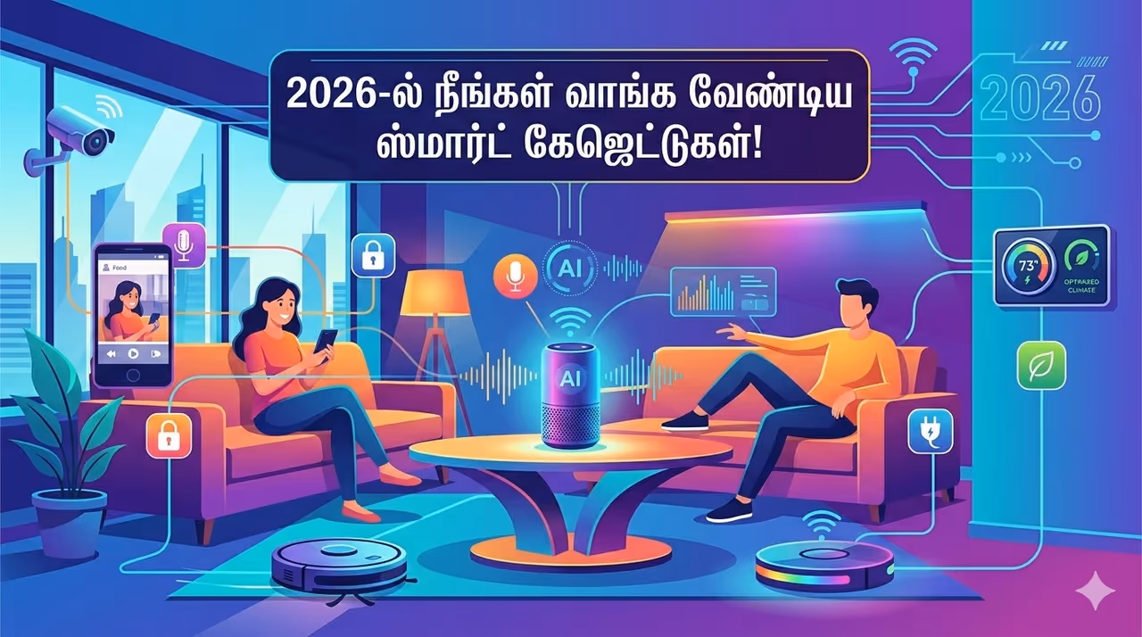 Smart Home 2026-ன் டாப் ஸ்மார்ட் ஹோம் கேஜெட்டுகள் பற்றித் தெரிந்துகொள்ளுங்கள். பாதுகாப்பு, சேமிப்பு மற்றும் வசதிக்கான சிறந்த வழிகாட்டல் இங்கே! மாஸ் கேஜெட்டுகள்!