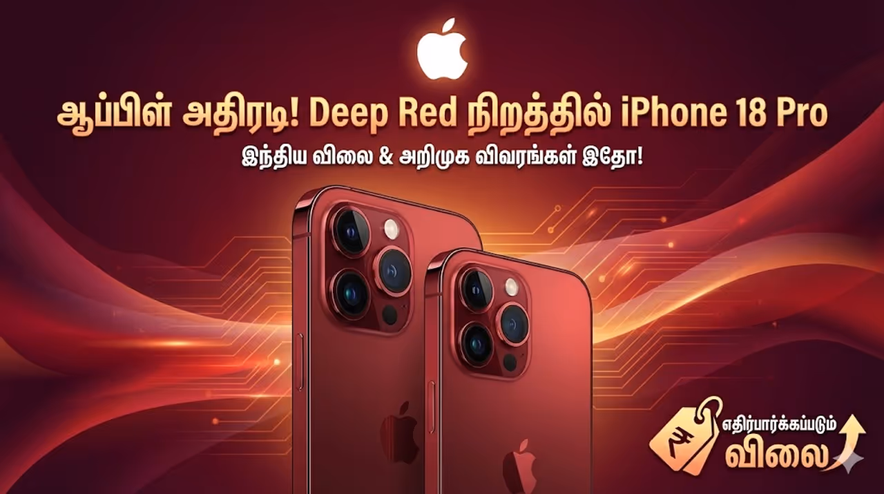 iPhone 18 Pro புதிய Deep Red கலரில் களமிறங்கும் iPhone 18 Pro மற்றும் Pro Max! இதன் சிறப்பம்சங்கள், டிசைன் மற்றும் இந்தியாவில் எதிர்பார்க்கப்படும் விலை விவரங்களை தெரிந்துகொள்ளுங்கள்.