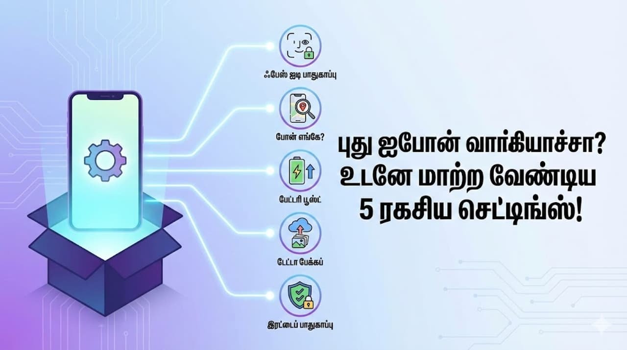 iPhone புதிய ஐபோன் வாங்கியவுடன் செய்ய வேண்டிய 5 முக்கிய செட்டிங்ஸ் மாற்றங்கள். உங்கள் போனின் பாதுகாப்பையும் பேட்டரியையும் அதிகரிக்க இதை உடனே படிங்க! 5 செட்டிங்ஸை மாத்துங்க