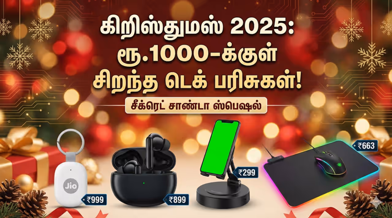 உலகம் முழுவதும் டிசம்பர் 25-ம் தேதி கிறிஸ்துமஸ் பண்டிகை கோலாகலமாக கொண்டாடப்பட உள்ளது. இந்த மகிழ்ச்சியான நேரத்தில் நண்பர்கள் மற்றும் உறவினர்களுக்குப் பரிசுகளை வழங்கிக் கொள்வது வழக்கம். குறிப்பாக அலுவலகங்களில் 'சீக்ரெட் சாண்டா' (Secret Santa) என்ற பெயரில் சக ஊழியர்களுக்குப் பரிசளிக்கும் கலாச்சாரம் தற்போது அதிகரித்து வருகிறது. உங்கள் நண்பருக்கோ அல்லது சக ஊழியருக்கோ ரூ.1000 பட்ஜெட்டில் பயனுள்ள டெக் பரிசைத் தேடுகிறீர்களா? உங்களுக்கான சிறந்த பட்டியல் இதோ.