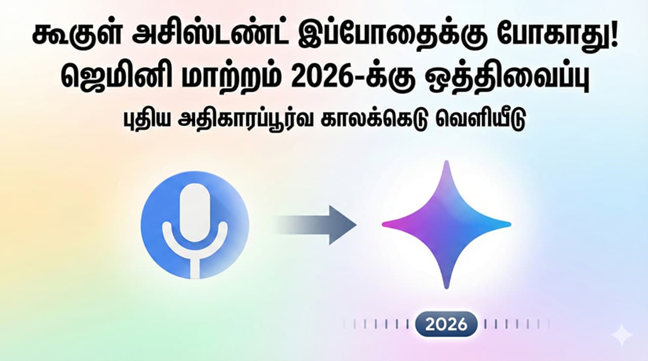 Gemini கூகுள் அசிஸ்டண்ட்டை மாற்றும் திட்டத்தை 2026-க்கு ஒத்திவைத்தது கூகுள். ஜெமினி 3 ஃபிளாஷ் மற்றும் புதிய அப்டேட் விபரங்கள் இதோ.