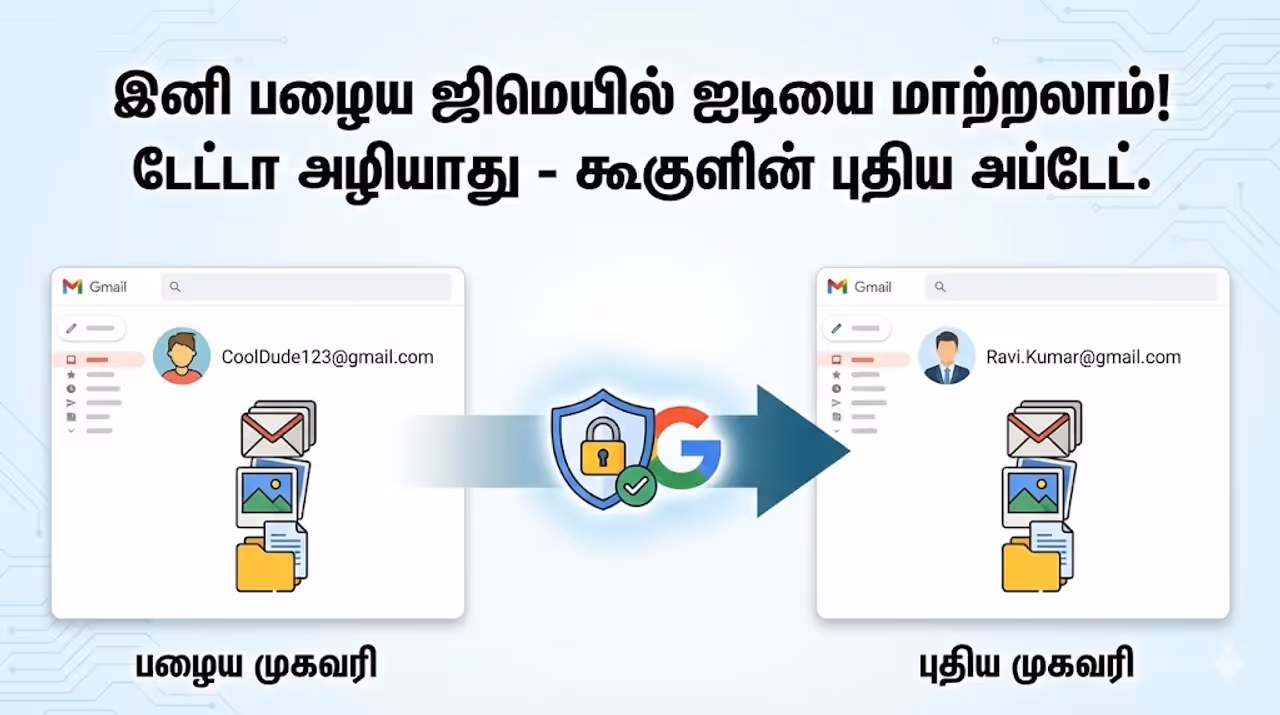 "சிறு வயதில் விளையாட்டாக வைத்த ஜிமெயில் ஐடி இப்போது அவமானமாக இருக்கிறதா? மாற்ற நினைத்தால் எல்லா டேட்டாவும் போய்விடுமே என்று கவலையா?" இனி அந்தக் கவலை தேவையில்லை!