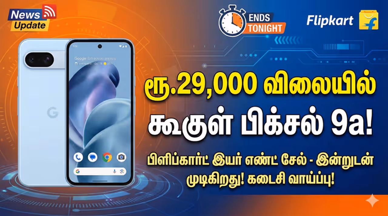 பிளிப்கார்ட்டின் ‘வருட இறுதி விற்பனை’ இன்று (டிசம்பர் 29) நள்ளிரவுடன் முடிவடைய உள்ள நிலையில், பிரீமியம் ஸ்மார்ட்போனான கூகுள் பிக்சல் 9a-வை மிகக் குறைந்த விலையில் வாங்குவதற்கான கடைசி வாய்ப்பு இதுவாகும்.
