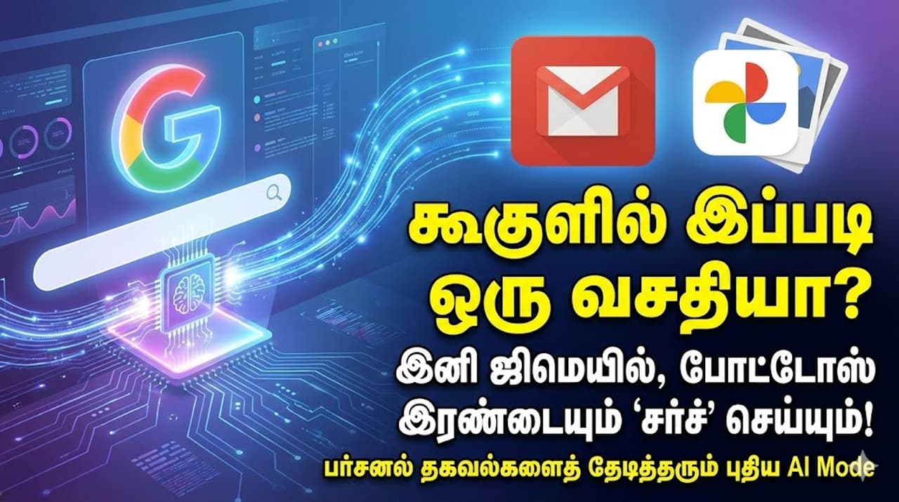 கூகுள் தனது தேடுப்பொறியில் (Search Engine) ஒரு மிகப்பெரிய மாற்றத்தைக் கொண்டுவந்துள்ளது. நாம் வழக்கமாக இணையத்தில் தகவல்களைத் தேடுவோம். ஆனால், இனி கூகுள் தேடல் உங்கள் தனிப்பட்ட உதவியாளராகவும் மாறப்போகிறது. கூகுளின் புதிய ‘AI Mode’, உங்கள் அனுமதியுடன் உங்கள் ஜிமெயில் (Gmail) மற்றும் கூகுள் போட்டோஸ் (Google Photos) ஆகியவற்றில் உள்ள தகவல்களைத் தேடி, உங்களுக்குத் தேவையான பதிலைத் துல்லியமாக வழங்கும் என அறிவிக்கப்பட்டுள்ளது.