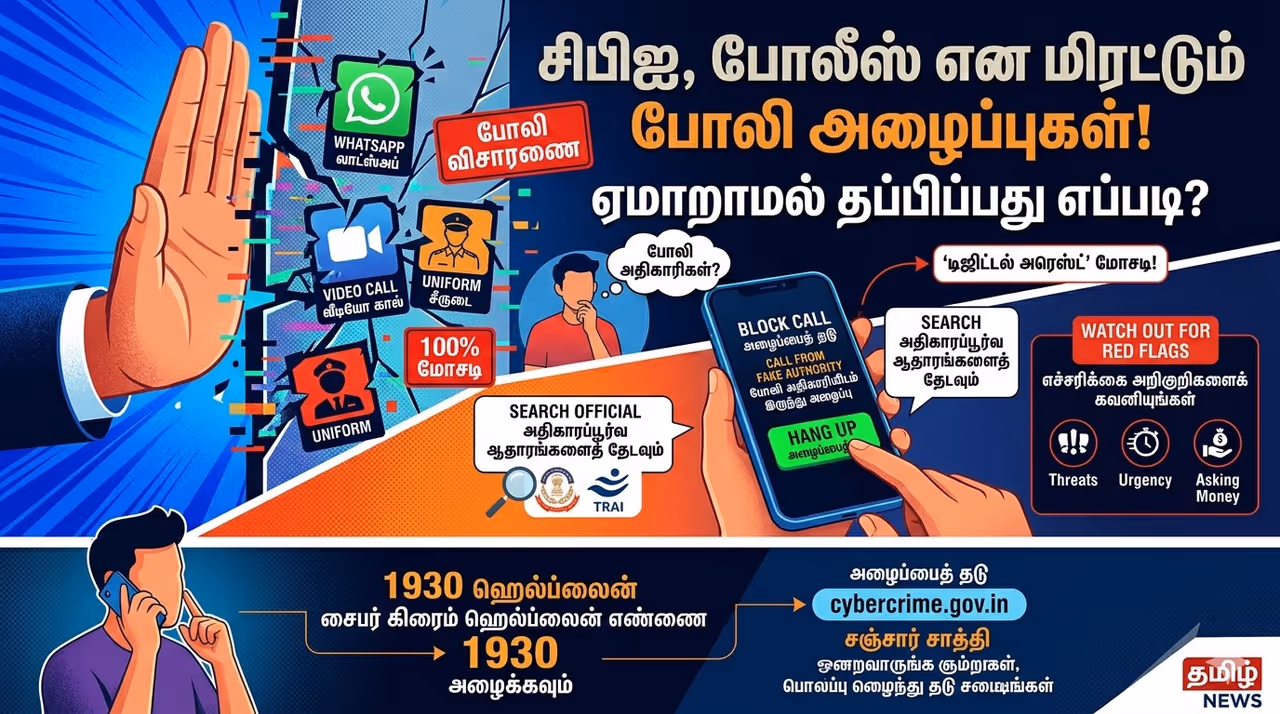 - பணத்தை இழக்காதீர்கள்! போலீஸ் என மிரட்டும் மோசடி கும்பலிடம் இருந்து தப்பிக்க 5 முக்கிய வழிகள்!