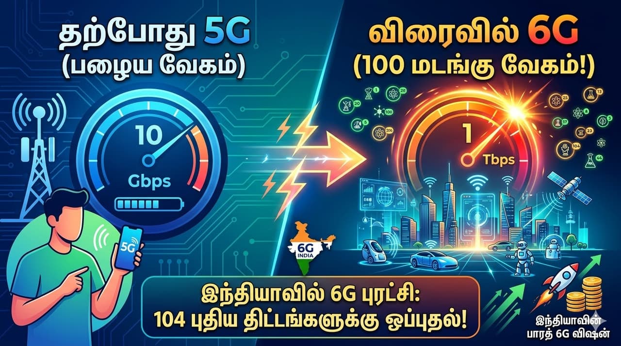 - 5G-ஐ விட 100 மடங்கு வேகம்! ஒரு நொடியில் சினிமா டவுன்லோட்! இந்தியாவில் 6G புரட்சி ஆரம்பம்!