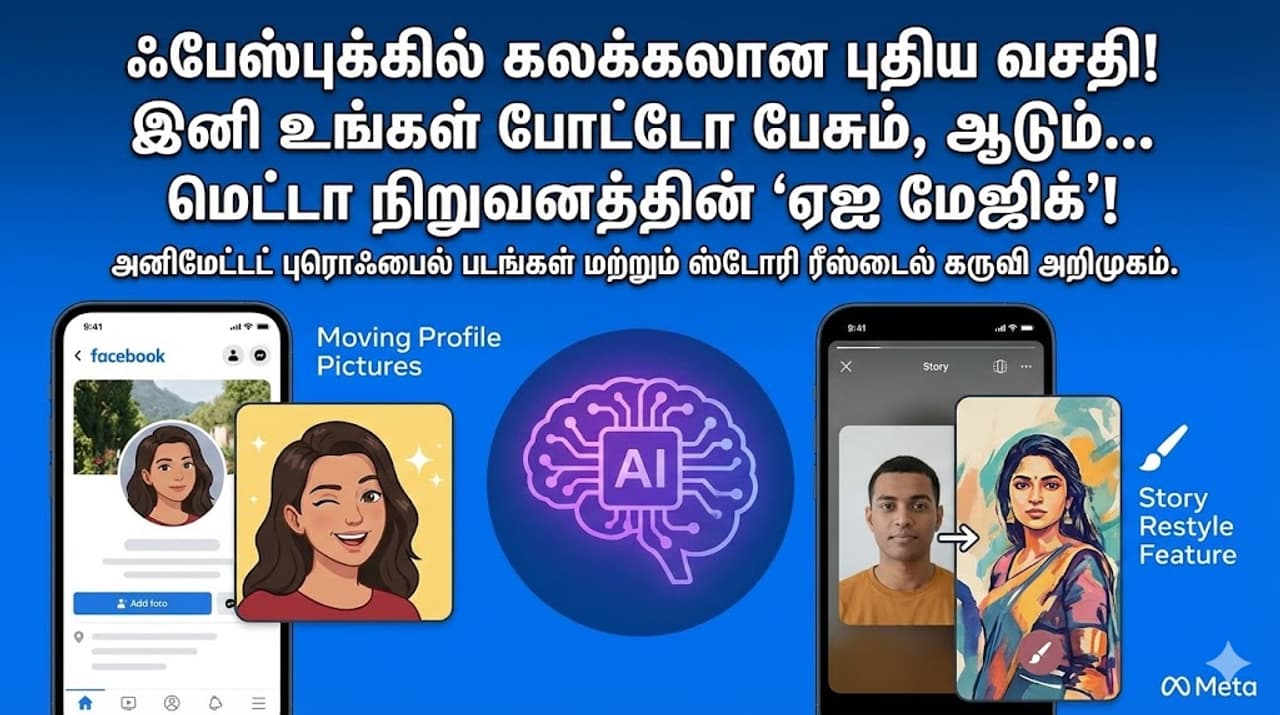 Facebook ஃபேஸ்புக்கில் புதிய ஏஐ வசதிகள் அறிமுகம்! அனிமேட்டட் புரொஃபைல் படங்கள் மற்றும் ஸ்டோரி ரீஸ்டைல் செய்வது எப்படி? முழு விவரம் உள்ளே.மெட்டா நிறுவனத்தின் 'ஏஐ மேஜிக்'!