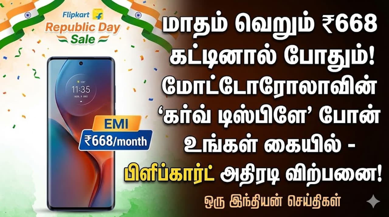 பிளிப்கார்ட் குடியரசு தின விற்பனையில் (Republic Day Sale) ஸ்மார்ட்போன்களுக்கு அதிரடி சலுகைகள் அறிவிக்கப்பட்டுள்ளன. குறிப்பாக, மோட்டோரோலா நிறுவனத்தின் பிரீமியம் மாடலான 'எட்ஜ் 50 பியூஷன்' (Edge 50 Fusion) தற்போது நம்பமுடியாத விலையில் கிடைக்கிறது.