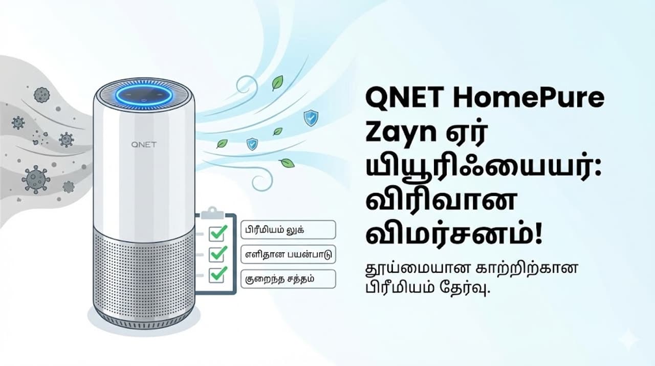 காற்று மாசுபாடு நாளுக்கு நாள் அதிகரித்து வரும் நிலையில், வீடுகளிலும் சுத்தமான காற்றை சுவாசிக்க ஏர் பியூரிஃபையர்கள் (Air Purifiers) அத்தியாவசியமான ஒன்றாகிவிட்டது. குறிப்பாக, குழந்தைகள் மற்றும் முதியவர்கள் உள்ள வீடுகளில் இது மிகவும் முக்கியம். இந்தத் தேவையைப் பூர்த்தி செய்யும் வகையில், QNET நிறுவனம் அறிமுகப்படுத்தியுள்ள பிரீமியம் ஏர் பியூரிஃபையர்தான் 'HomePure Zayn'. சுமார் 3 மாத பயன்பாட்டிற்குப் பிறகு, இந்த தயாரிப்பு குறித்த விரிவான விமர்சனத்தை இங்கே காண்போம்.