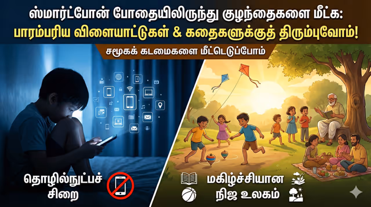 இன்றைய நவீன உலகில், குழந்தைகளின் கைகளில் தவழும் ஸ்மார்ட்போன்கள் அவர்களின் உலகத்தையே சுருக்கிவிட்டன. 1989-ம் ஆண்டு ஐக்கிய நாடுகள் சபை கொண்டுவந்த குழந்தைகள் உரிமைகள் மாநாடு (CRC), குழந்தைகளின் சுதந்திரம், கல்வி மற்றும் ஆரோக்கியத்தை வலியுறுத்தியது. ஆனால், இன்றைய டிஜிட்டல் யுகத்தில், இந்த உரிமைகளைத் தாண்டியும் குடும்பம் மற்றும் சமூகத்தின் 'கடமை' என்பது மிக முக்கியமானதாக மாறியுள்ளது. தொழில்நுட்ப சாதனங்களைச் சார்ந்திருக்காத செயல்பாடுகள் மூலமே குழந்தைகளின் முழுமையான வளர்ச்சியை உறுதி செய்ய முடியும்.
