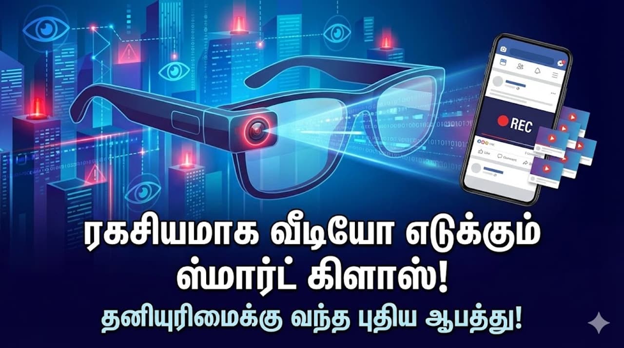 தொழில்நுட்ப வளர்ச்சி மனித வாழ்க்கையை எளிதாக்கினாலும், அது சில நேரங்களில் அச்சுறுத்தலாகவும் மாறுகிறது. தற்போது சந்தையில் பிரபலமாகி வரும் 'ஸ்மார்ட் கிளாஸ்' (Smart Glasses) எனப்படும் கேமரா பொருத்தப்பட்ட கண்ணாடிகள், தனியுரிமை மீறல் (Privacy Violation) குறித்த பெரும் விவாதத்தை கிளப்பியுள்ளன. சாதாரண சன்கிளாஸ் போலவே தோற்றமளிக்கும் இந்த சாதனங்களை அணிந்துகொண்டு, பொது இடங்களில் மற்றவர்களுக்குத் தெரியாமலேயே அவர்களை வீடியோ எடுக்கும் சம்பவங்கள் அதிகரித்து வருகின்றன.