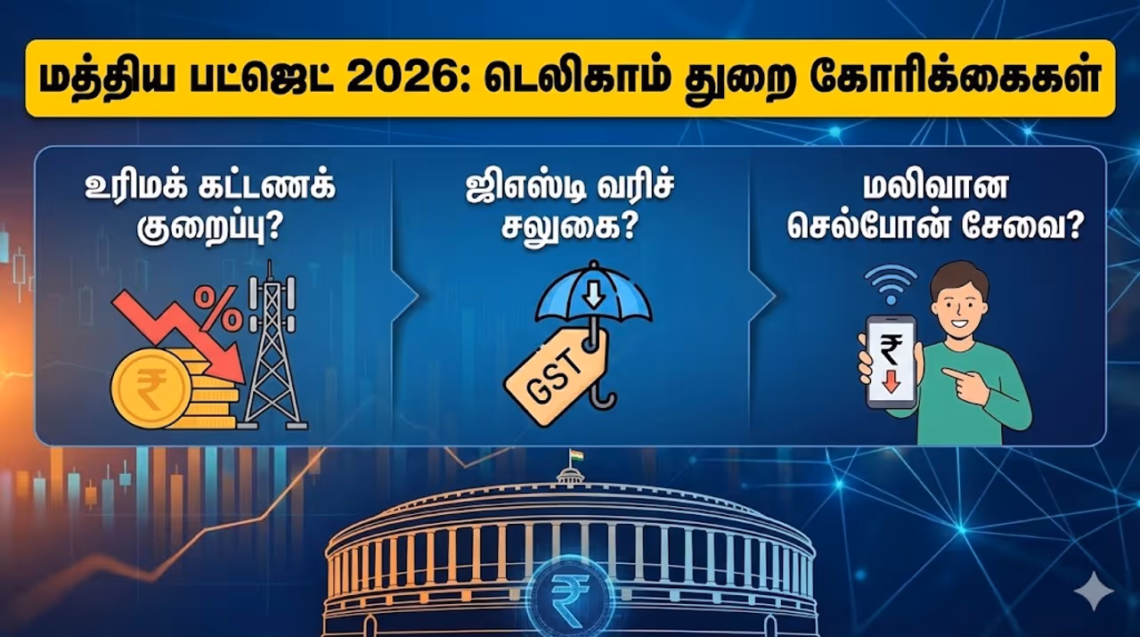 Telecom மத்திய பட்ஜெட் 2026-ல் உரிமக் கட்டணத்தை 1% ஆகக் குறைக்கவும், ஜிஎஸ்டி வரியைக் குறைக்கவும் டெலிகாம் நிறுவனங்கள் கோரிக்கை விடுத்துள்ளன. பட்ஜெட் 2026-ல் வெளியாகும் அதிரடி அறிவிப்பு!