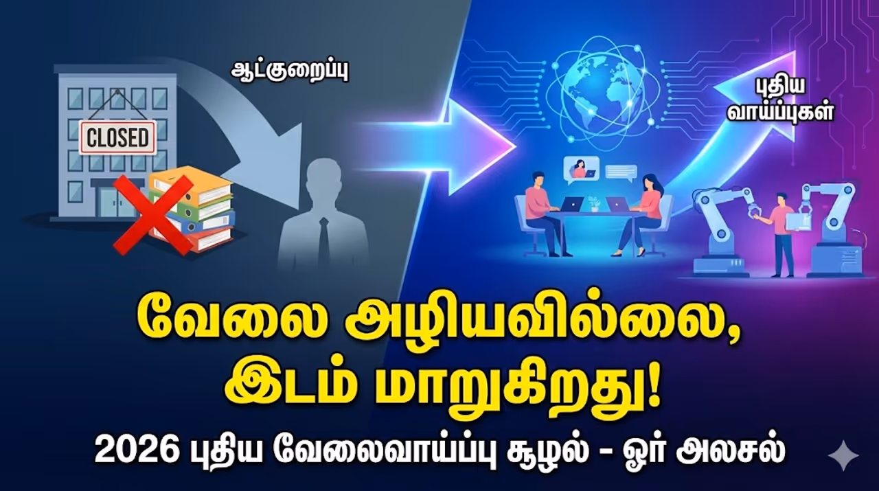 2026-ம் ஆண்டு வேலை இழப்பின் ஆண்டு அல்ல; அது வேலை மாற்றத்தின் ஆண்டு. பழைய கதவுகள் மூடினால், புதிய டிஜிட்டல் ஜன்னல்கள் திறக்கின்றன. நாம் செய்ய வேண்டியதெல்லாம், அந்த ஜன்னல் வழியாகப் பார்க்கத் தெரிந்துகொள்வது மட்டுமே!