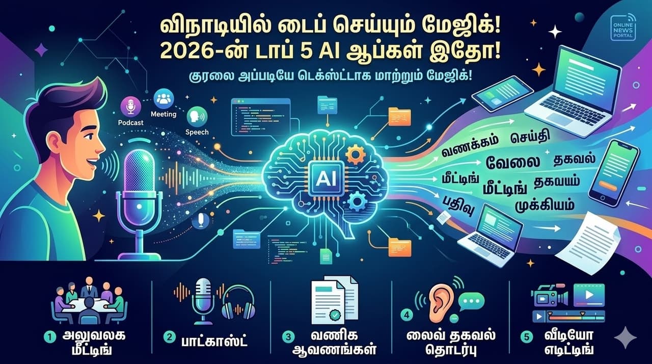 2026-ஆம் ஆண்டில், உங்கள் குரலை நிமிடங்களில் டெக்ஸ்ட்டாக மாற்றி வேலைகளை மிச்சப்படுத்தும் சிறந்த 5 AI ஆப்கள் என்னென்ன? அவை எப்படிச் செயல்படுகின்றன? என்பதைப் பற்றி விரிவாகப் பார்ப்போம்.