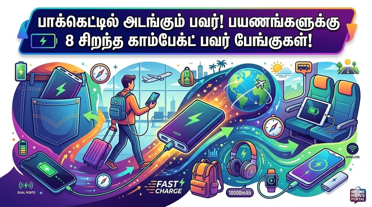 இப்படிப்பட்ட சூழ்நிலைகளில், பெரிய மற்றும் எடை அதிகமான பவர் பேங்குகளை (Power banks) தூக்கிச் செல்வது கடினமாக இருக்கலாம். இதற்காகவே, உங்கள் பேண்ட் பாக்கெட்டிலோ அல்லது சிறிய ஹேண்ட்பேக்கிலோ எளிதாக அடங்கக்கூடிய, ஆனால் அதிக திறன் கொண்ட 'பாக்கெட் சைஸ்' (Pocket-sized) பவர் பேங்குகள் தற்போது சந்தையில் கலக்கி வருகின்றன. பயணங்களுக்கு ஏற்ற சிறந்த 8 காம்பேக்ட் பவர் பேங்குகள் இங்கே பட்டியலிடப்பட்டுள்ளன.
