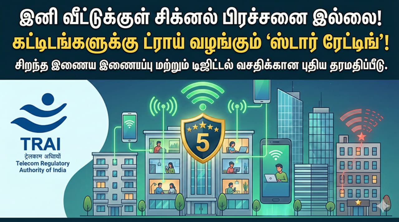 TRAI கட்டிடங்களில் சிறந்த இணைய வேகத்தை உறுதி செய்ய ட்ராய் ஸ்டார் ரேட்டிங் முறையை அறிமுகம் செய்துள்ளது. முழு விவரம் உள்ளே.