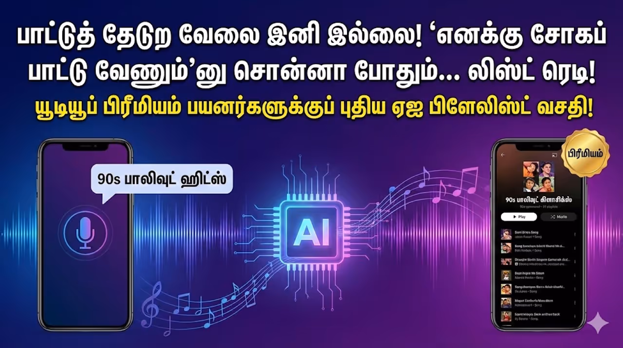 YouTube யூடியூப் பிரீமியம் பயனர்களுக்குப் புதிய ஏஐ பிளேலிஸ்ட் வசதி அறிமுகம்! இனி உங்களுக்குப் பிடித்த பாடல்களை ஏஐ மூலமாகவே பிளேலிஸ்டாக மாற்றலாம். முழு விவரம் உள்ளே.