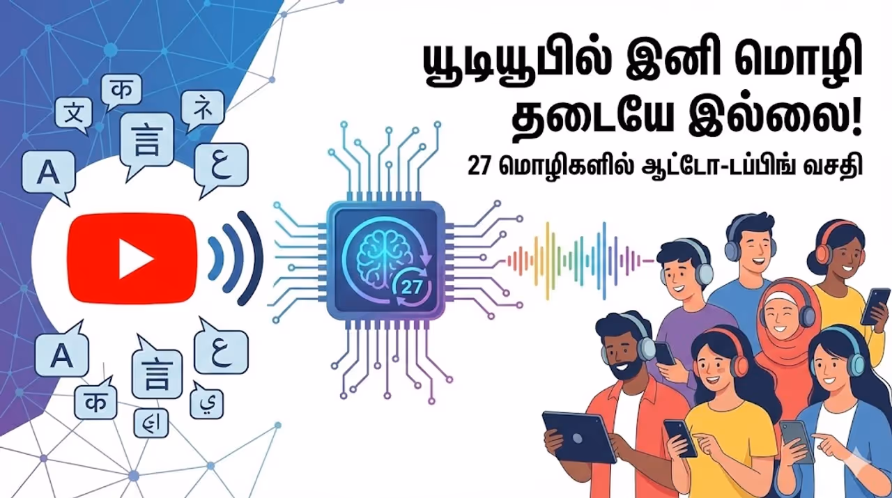 YouTube யூடியூப் தனது AI ஆட்டோ-டப்பிங் வசதியை அனைவருக்கும் விரிவுபடுத்தியுள்ளது. இனி இந்தி உட்பட 27 மொழிகளில் வீடியோக்களை உங்கள் தாய்மொழியிலேயே கண்டு ரசிக்கலாம்.