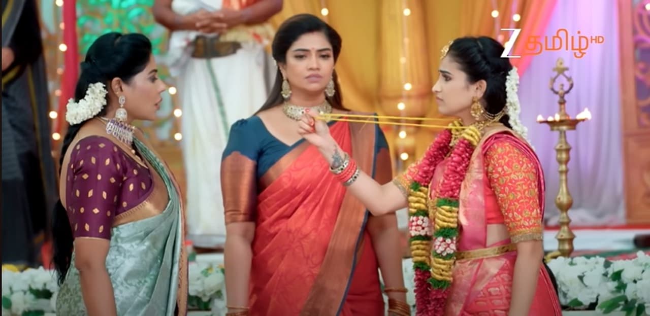 இந்த சீரியலில் கார்த்திக் ராஜ், வைஷ்ணவி சதீஷ் (ரேவதி), சாமுண்டீஸ்வரி (ரேஸ்மா பசுபுலேட்டி), மைதிலி (ரேஷ்மா), காளியம்மாள் (ஃபாத்திமா பாபு) என்று ஏராளமான நட்சத்திரங்கள் நடித்து வருகின்றனர். என்னதான் திருமணம் நடந்தாலும் கணவர் வேண்டாமென்று அக்காவுடன் இருந்து கொண்டு அவருக்கு தெரியாமல் கணவருடன் ரகசியமாக பேசி வரும் சந்திரகலா தனது அக்காவின் குடும்பத்தை பழி தீர்க்க துடியாக துடிக்கிறார்.