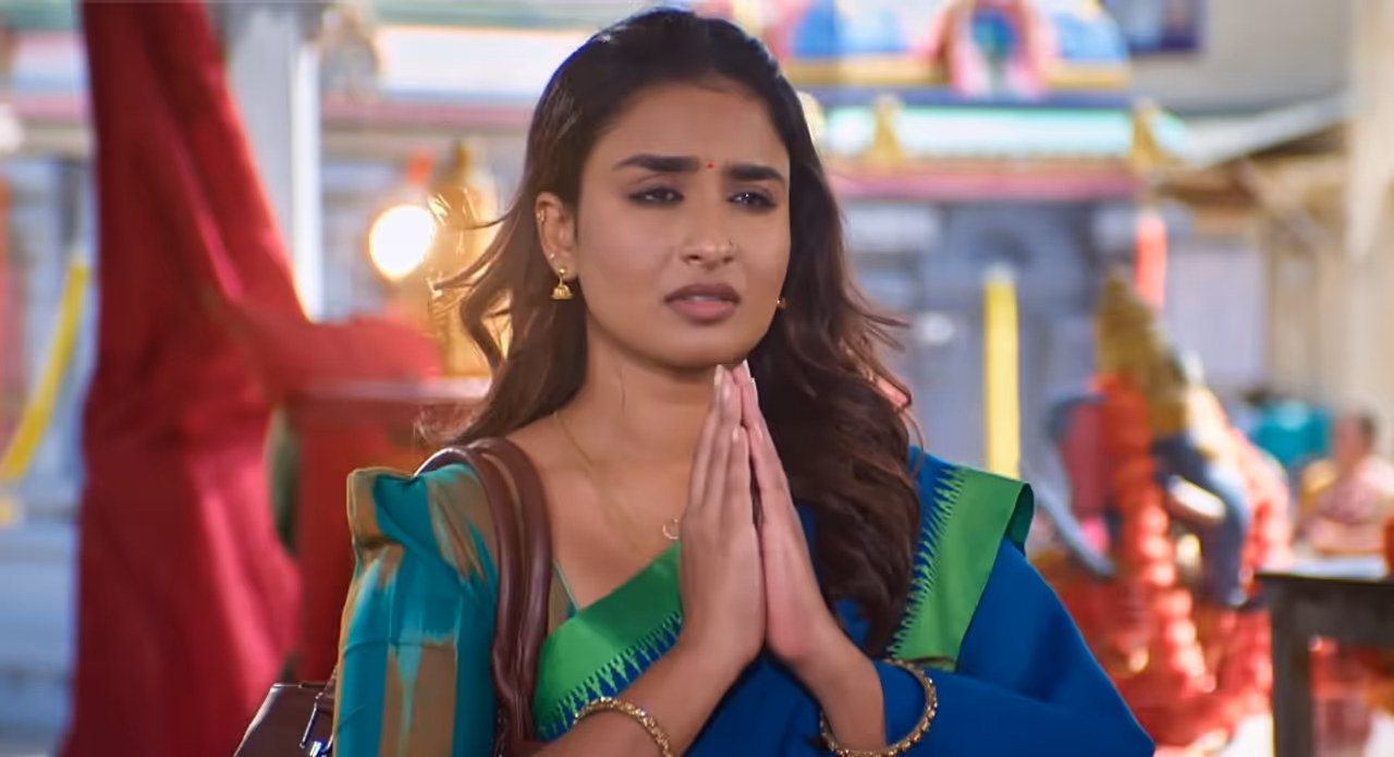 யாரு நான் பாக்க கூடாது நினைக்கிறேனோ அவங்க பத்தி தான் என் பொண்ணு நிலா கேக்குறாள்.நான் என்ன பண்ண போறேன் சாமி. நீங்க தான் எனக்கு ஒரு முடிவு சொல்லணும் என்று விஜி கேட்க. யார் என் வாழ்க்கையில இருந்து போனவங்களை திரும்பி பார்க்கவே கூடாது நினைக்கவே கூடாதுனு நினைக்கிறேனோ அவங்கள தான் என் பையன் திரும்பி கேட்கிறான் நான் என்ன பண்ண என்று விக்ரம் சாமியிடம் வேண்டிக்கொள்கிறான். இவர்கள் இருவரும் சாமியை கும்பிட்டு பிரகாரத்தை சுற்றி வரும் போது விஜி ஒரு பெண்மணி அங்க பிரதோஷம் செய்ய செய்து கொண்டிருக்கிறார் அப்போது விக்ரம் எதிரே வருகிறார் விஜியை பார்த்து விடுகிறார் விக்ரம் பார்த்ததும் மறைந்து கொள்கிறார்.