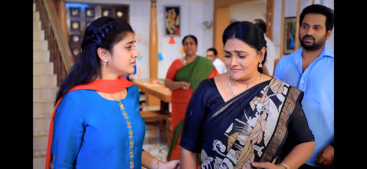 Pandian Stores 2, தாய் வீட்டில் இருந்து கண்ணீருடன் வெளியேறும் கோமதி, உறவு சேராது என வருந்துகிறார். மறுபுறம், முத்துவேலின் தாய் செண்டிமென்டாக பேசி கோமதி வீட்டிற்கு விருந்துக்கு செல்ல சம்மதிக்க வைக்கிறார். இந்த தகவலால் கோமதி பெரும் மகிழ்ச்சி அடைகிறார்.