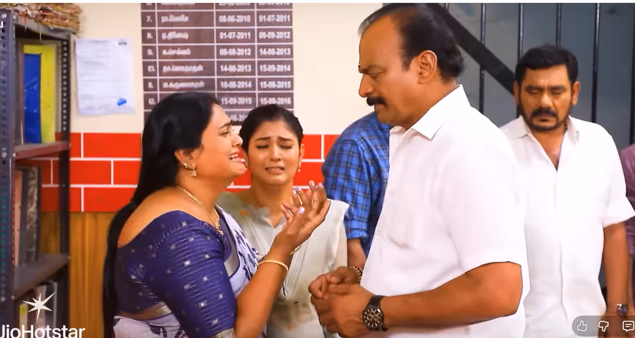 சக்திவேலோ கோமதியை பார்த்து அழுகிறார். அண்ணே என்று கோமதி அழ அவரது கையை பிடித்து சக்திவேல் அழுகிறார். இதையெல்லாம் பாண்டியன் அதிர்ச்சியுடன் வேடிக்கை பார்த்துக் கொண்டிருக்கிறார். கடைசியாக இவர்கள் யாரும் எந்த தப்பும் செய்திருக்க மாட்டாங்க. அப்படியிருக்கும் போது எதற்கு ஸ்டேஷன் வரையில் கொண்டு வர வேண்டும் என்றார் சக்திவேல். அதற்கு அவர்களது மருமகள் தான் அவர்கள் மீது புகார் கொடுத்திருக்கிறார். வரதட்சணை கேட்டு கொடுமைப்படுத்தியதாக புகார் கொடுத்தது பாக்கியம். அப்படியிருக்கும் போது எப்படி தங்கமயில் புகார் கொடுத்திருக்க முடியும்.