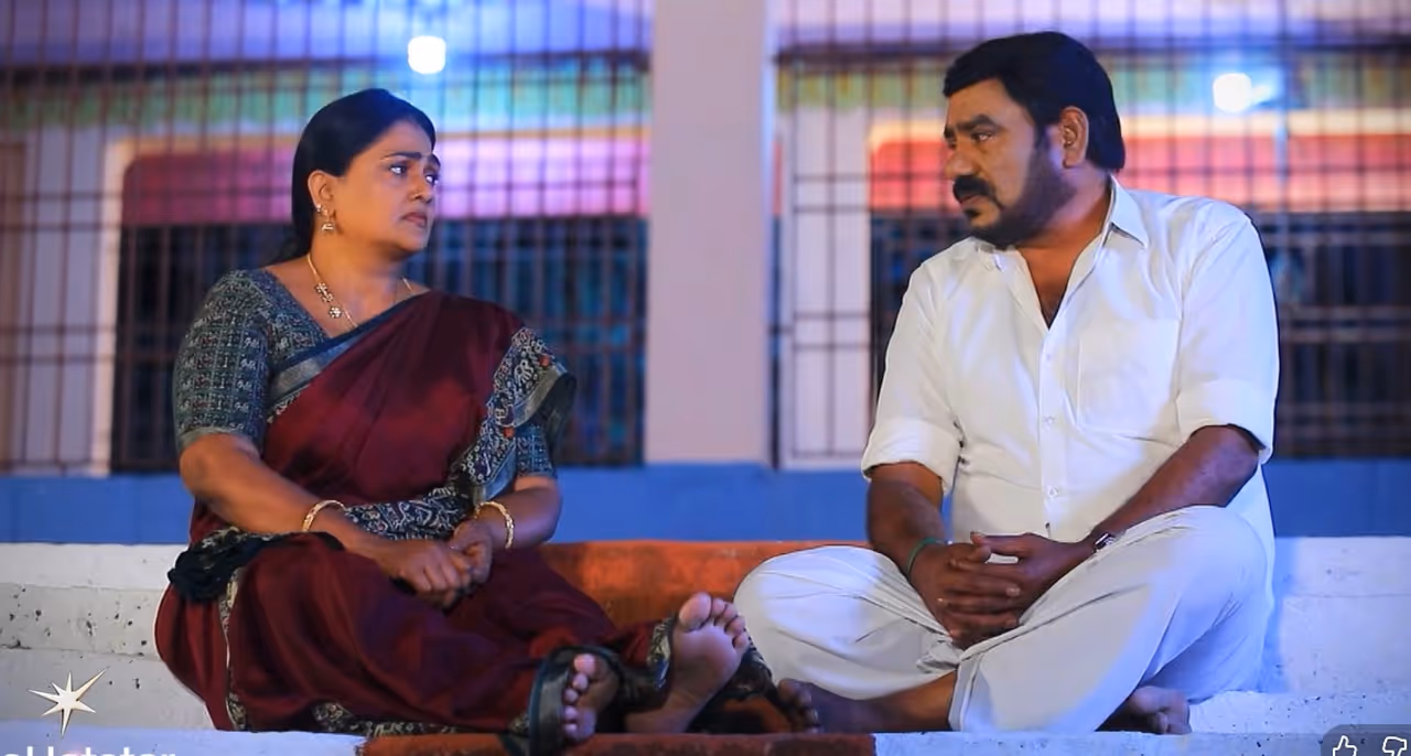அதில், இருவரும் ஒரு கோயில் படிக்கட்டில் அமர்ந்து கொண்டு திருமணத்திற்கு பிறகு உன்னோட அண்ணன்களுக்கு பயந்து கொண்டு ஊர் ஊராக சுற்றிக் கொண்டிருந்தோம் என்றார் பாண்டியன். அதன் பிறகு இன்று தான் காலையிலிருந்து என்னுடன் இருந்திருக்கீங்க என்றார். நீ போட்ட டிராமா எல்லாம் என்னிடம் பேசுவதற்கு தான் என்று தெரியாமல் உன்னை கஷ்டப்படுத்திவிட்டேன். என்னை மன்னித்துவிடு என்று அவரது காலை தொட்டு மன்னிப்பு கேட்டார்.