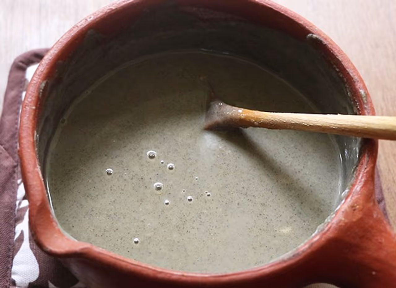 - அரைத்த மாவினை தேவையான அளவு எடுத்து அதனுடன் தண்ணீர் சேர்த்து கலக்கி கொள்ளுங்கள். கட்டி கட்டியாக இல்லாமல் கலக்கிய பின்னர் மிதமான சூட்டில் கொதிக்க வையுங்கள். அதனுடன் ஏற்கனவே கரைத்து வைத்துள்ள வெல்லத்தை சேர்த்து இறக்கவும். வாசனைக்காக பொடித்த ஏலக்காயை தூவலாம்.