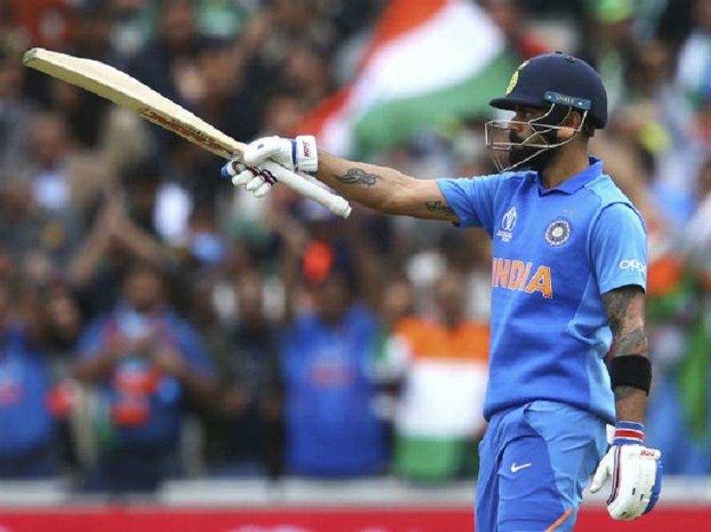 அதன்பின் களமிறங்கி சிறிது அதிரடி காட்டிய ஹர்திக் பாண்ட்யா 26(19) ரன்களிலும், பெரிதும் எதிர்பார்க்கப்பட்ட டோனி 1(2) ரன்னிலும் ஆட்டமிழந்தனர். மறுமுனையில் சிறப்பாக ஆடி தனது அரைசதத்தை பதிவு செய்த விராட் கோலி 77(65) ரன்களில் கேட்ச் ஆனார். அப்போது போட்டியின் இடையே மழை குறுக்கிட்டதால் ஆட்டம் சிறிது நேரம் நிறுத்தி வைக்கப்பட்டு மீண்டும் தொடங்கப்பட்டது.