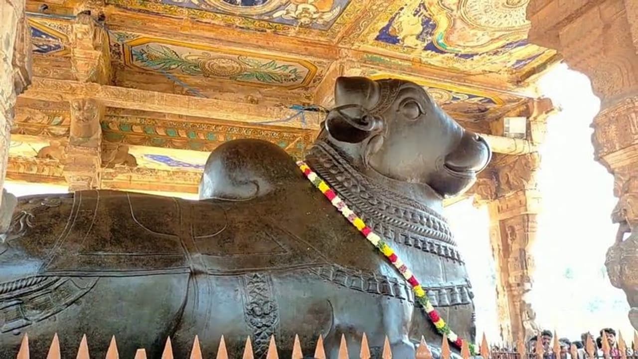 இந்த நந்தி கி.பி. 16-ம் நூற்றாண்டில் விஜயநகர பேரரசின் காலத்தில் நாயக்க மன்னர்களால் உருவாக்கபட்டதாகும். இந்த மண்டபத்துக்கு தென்புறம் திருச்சுற்று மாளிகையில் வடதிசை நோக்கியவாறு காணப்படும் நந்தியே ராஜராஜன் காலத்தில் கோவிலுக்காக வடிக்கபட்டது. தஞ்சை பெரிய கோவிலில் இருக்கும் நந்தியின் சிலை இந்திய கோவில்களில் இருக்கும் மிகப்பெரிய நந்தி சிலைகளில் ஒன்றாகும். கப்பில் உள்ள ஐந்து தளங்களைக் கொண்ட கேரளாந்தகன் திருவாயிலில் முதல்தளம் தவிர, மற்றவை செங்கற்களால் கட்டப்பட்டவை. இந்தச் செங்கற்கள் சிறப்பான தொழில்நுட்பத்தில் தயாரிக்கப்பட்டவை.