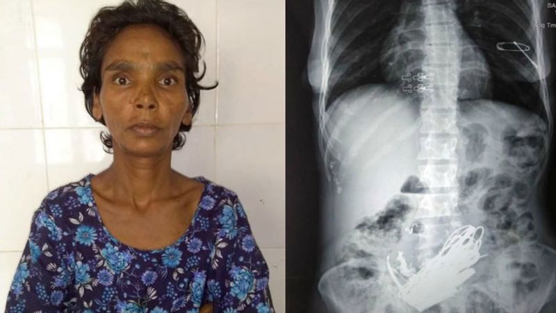 மனநலம் பாதிக்கப்பட்ட பெண்ணின் வயிற்றில் இருந்து ஒன்றரை கிலோ இரும்புப் பொருட்கள் மற்றும் அணிகலன்கள் இருந்ததை கண்டு மருத்தவர்கள் அதிர்ச்சியடைந்தனர்.