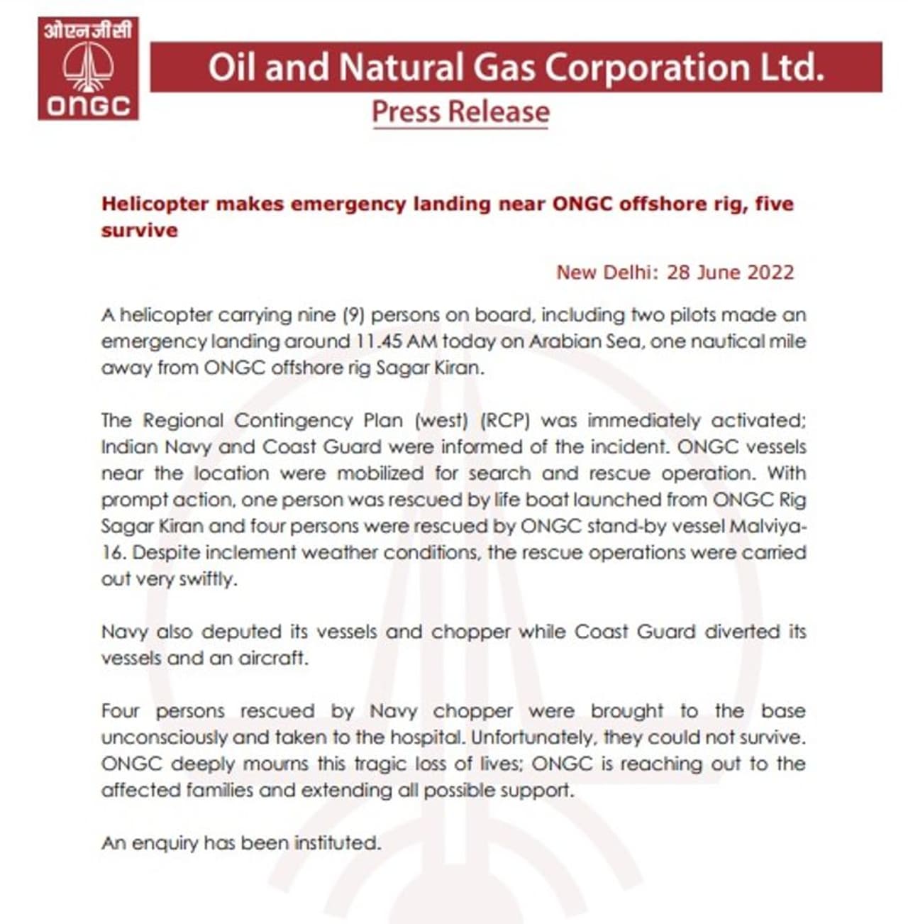 மும்பை அருகே ஏற்பட்ட ONGC ஹெலிகாப்டர் விபத்தில் 4 பேர் உயிரிழந்த சம்பவம் பெரும் சோகத்தை ஏற்படுத்தியுள்ளது.