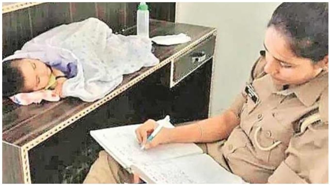 காவல் நிலையத்தில், பெண் கான்ஸ்டபிள் ஒருவர் தனது கைக்குழந்தையுடன் அலுவல் பணிகளை மேற்கொண்ட அவரை அவரது