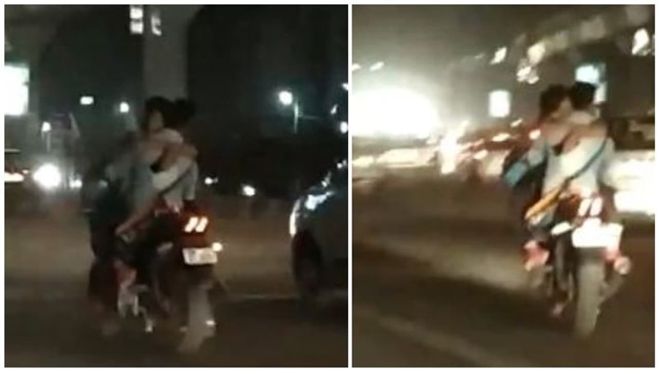 காதலனும் ஆபத்தை உணராமல், தன்னுடைய காதலியுடன் முத்தமிட்டுக்கொண்டே... வண்டியை வேகமாக ஓட்டி சென்றார். இது பார்ப்பவர்களை அதிர்ச்சி அடைய வைத்தது. இந்த சம்பவத்தை நேரில் பார்த்த ஐபிஎஸ் அதிகாரி தலிவால், இந்த காட்சியை வீடியோவாக எடுத்து, அதனை அவரது ட்விட்டர் பக்கத்தில் வெளியிட்டுள்ளார்.