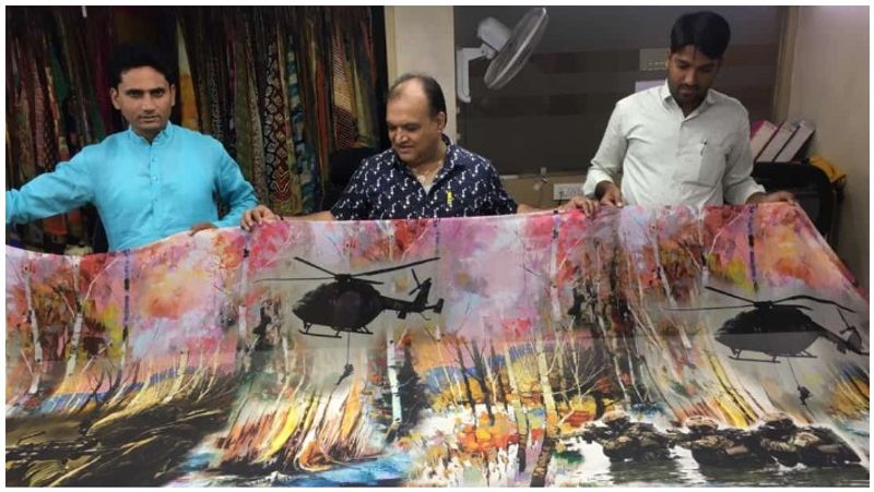 தேசபக்தி பீறிட்டுக்கிளம்பியுள்ள நிலையில் திரையுலகினர் புல்வாமா தாக்குதல் குறித்தும், விமானி அபிநந்தன் குறித்தும் படம் எடுக்கத் துடித்துக்கொண்டிருக்க, ஒரு டெக்ஸ்டைல் மில் அதிபர் ராணுவ வீரர்களின் போராட்டப் படங்களைப் பிரிண்ட் செய்து சேலைகள் தயாரிப்பதில் மும்முரமாக இறங்கியுள்ளார்.