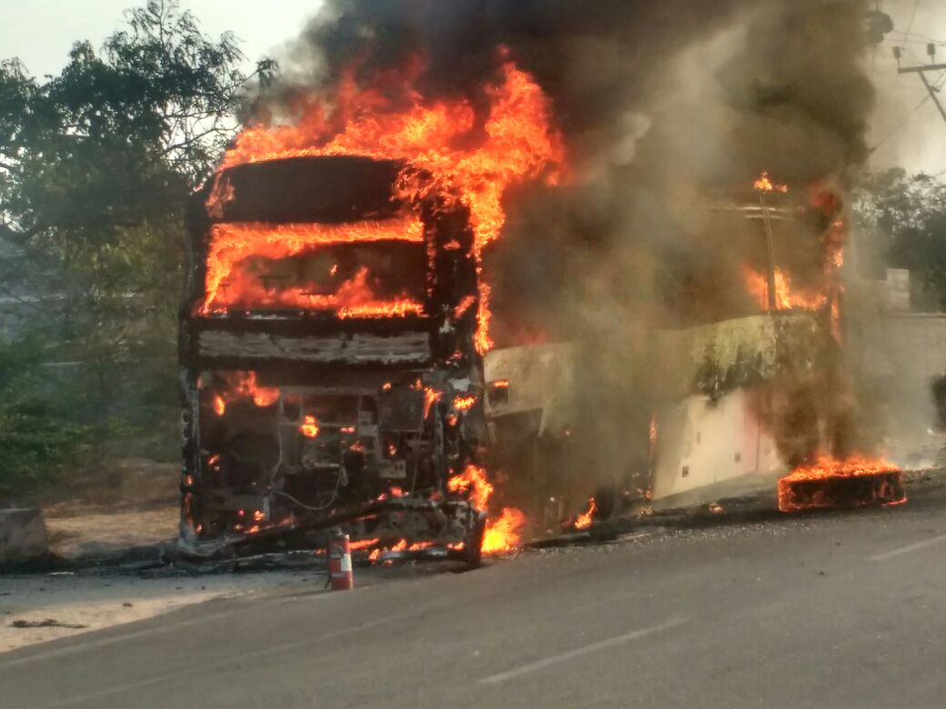 ஐதராபாத்தில் இருந்து வாரங்கல் நோக்கி சென்ற ஆந்திர மாநில அரசுக்கு சொந்தமான வால்வோ பஸ் தீடிரென தீப்பிடித்து எரிந்து சாம்பலானது.