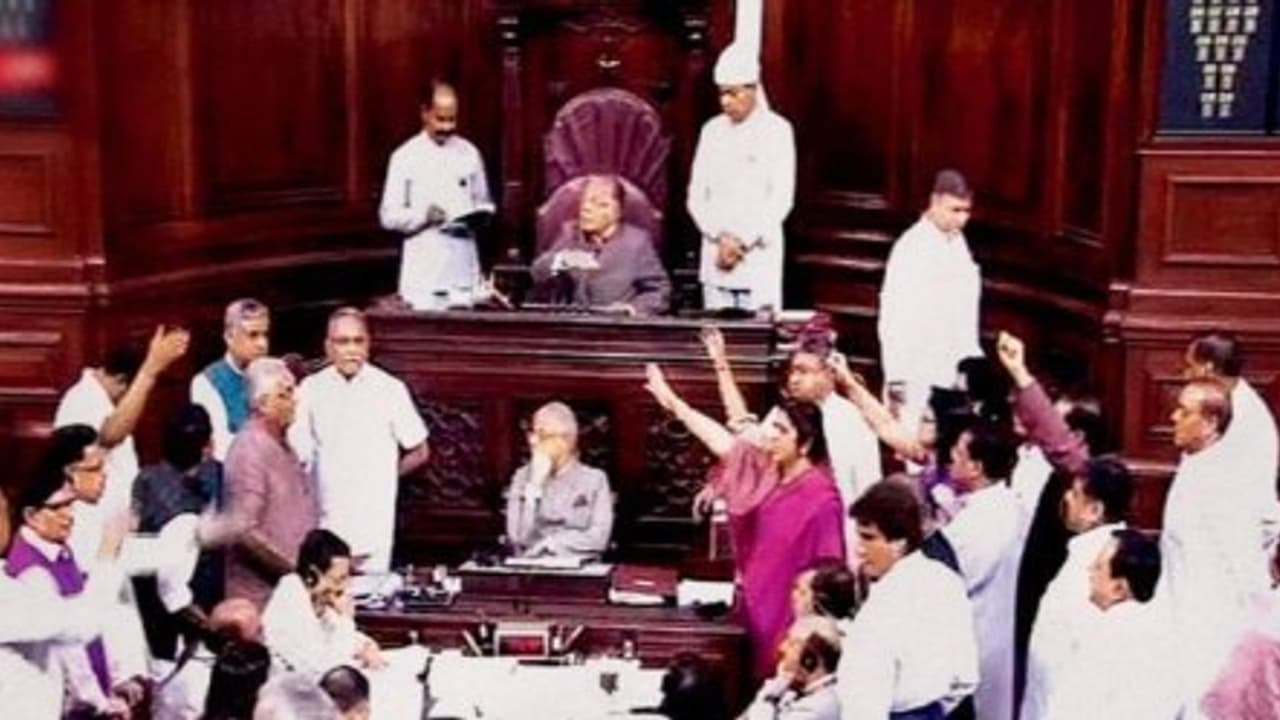 மாநிலங்களவையில் ஏற்பட்ட தொடர் அமளி காரணமாக மதியம் 12 மணிவரை ஒத்திவைக்கப்பட்டது