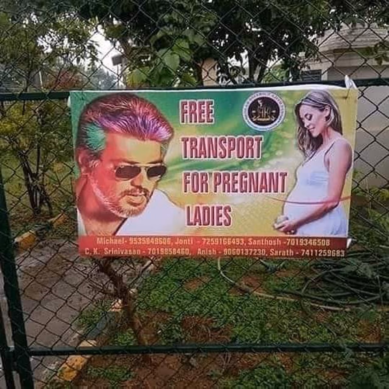 கர்நாடக அஜீத் ரசிகர்கள் செய்திருக்கும் இந்த நற்செயலை தமிழக அஜீத் ரசிகர்கள் தங்கள் டிவிட்டர் பக்கத்தில் பின்வருமாறு, மனமாற பாராட்டி இருக்கின்றனர். ” கர்ப்பிணி பெண்களுக்கு இலவச வாகன சேவை கர்நாடக மாநிலம் கோலார் மாவட்ட தல ரசிகர்களால் தொடங்கப்பட்டது...அன்பு உள்ளங்களுக்கு வாழ்த்துக்கள்” என அந்த வாழ்த்து செய்தியில் குறிப்பிடப்பட்டிருக்கிறது.