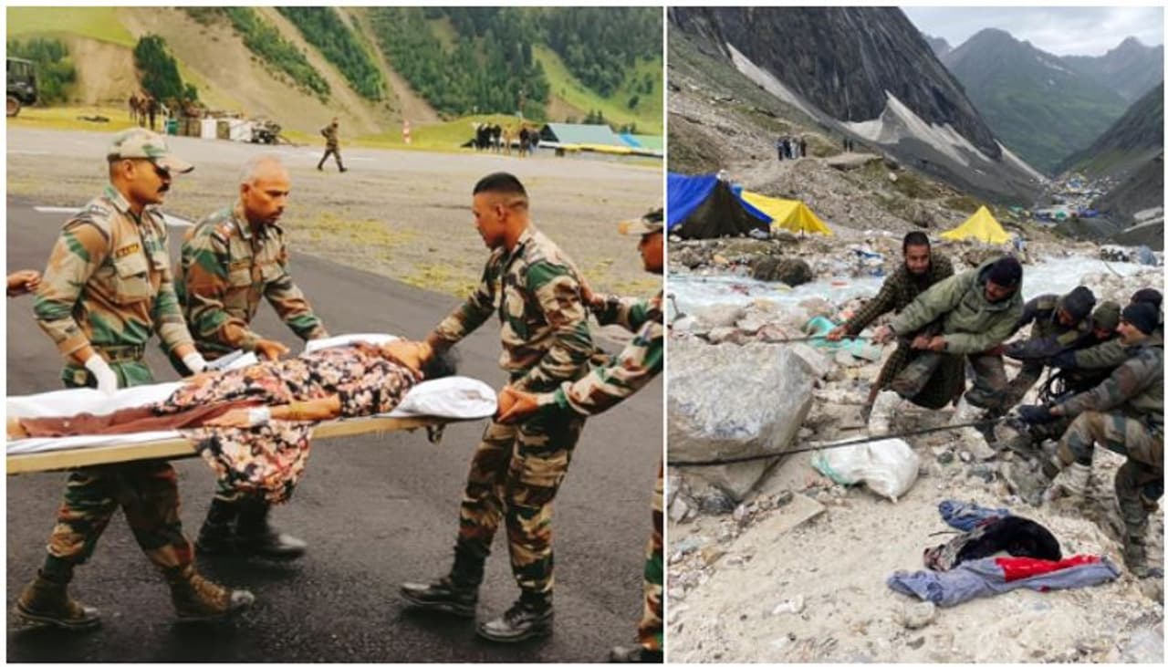 அங்கு அமைக்கப்பட்டிருந்த 20க்கு மேற்பட்ட முகாம்களை வெள்ளம் அடித்துச் சென்றது. வெள்ளப்பெருக்கால் நிலச்சரிவு ஏற்பட்டதில் அமர்நாத் யாத்ரீகர்கள் பலி எண்ணிக்கை 17ஆக உயர்ந்துள்ளது. மேலும் 40 பேரை காணவில்லை என்பதால் அவர்களை தேடும் பணிகள் முடுக்கிவிடப்பட்டுள்ளது. மழை, வெள்ளம் காரணமாக அமர்நாத் யாத்திரை தற்காலிகமாக நிறுத்தி வைக்கப்பட்டுள்ளது.