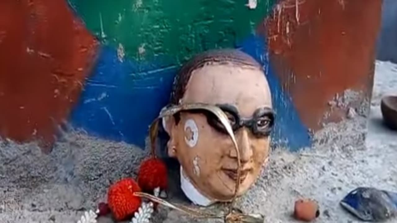 மேற்கு வங்க மாநிலம் கொல்கத்தாவில் முதலமைச்சர் மம்தா பானர்ஜியின் வீட்டுக்கு அருகே பாரதிய ஜன சங்க நிறுவனர் ஷ்யாம் பிரசாத் முகர்ஜியின் சிலை உள்ளது. இந்த சிலை மர்ம நபர்களால் சேதப்படுத்தப்பட்டுள்ளது.