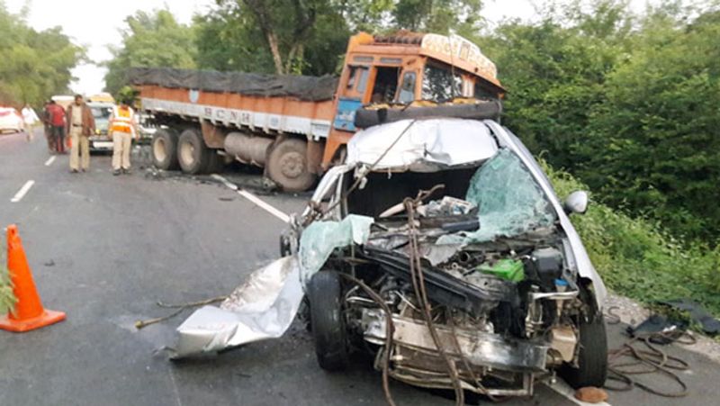 அப்போது ரேணிகுண்டா மண்டலத்துக்குட்பட்ட மாமண்டூரு என்ற இடத்தில் எதிர்திசையில் இருந்து வந்த லாரி இன்று அதிகாலை அந்த காரின் மீது நேருக்கு நேர் மோதியது. இந்த விபத்தில் கங்காதரம், அவர் மனைவி விஜயம்மா, சகோதரர் பிரசன்னா, பிரசன்னாவின் மனைவி மாரியம்மா, ஒன்றரை வயது குழந்தை உட்பட 5 பேர் சம்பவ இடத்திலேயே உடல் நசுங்கி உயிரிழந்தனர்.