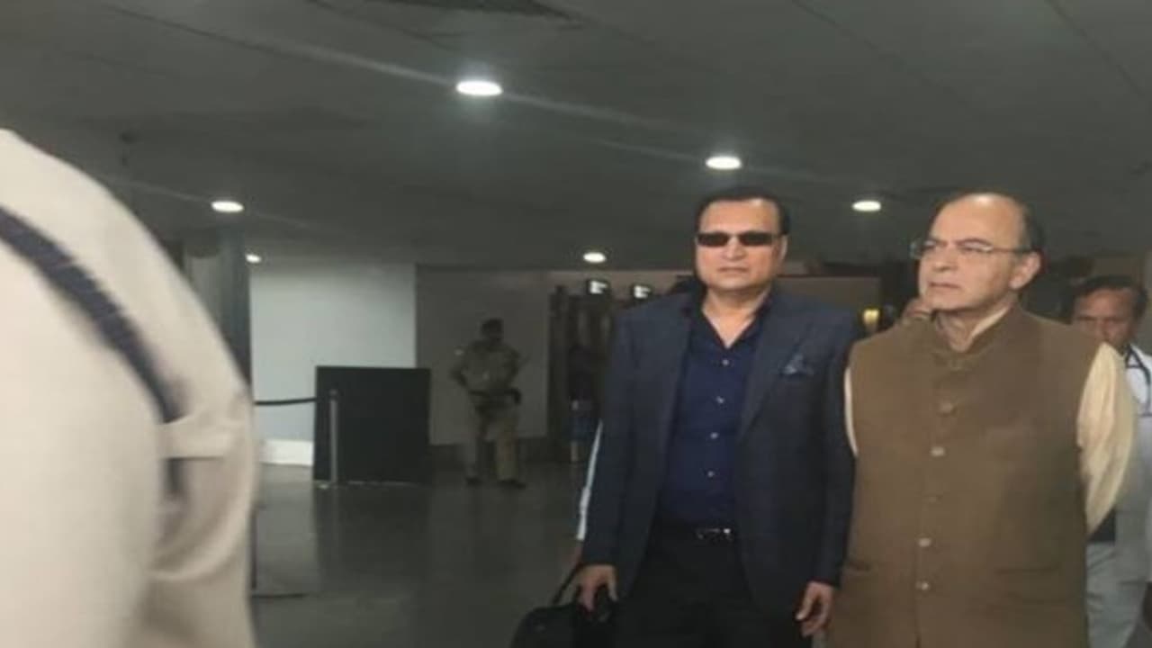 ஹரித்துவாரில் இருந்து டெல்லி புறப்பட்ட போது மத்திய அமைச்சர் அருண்ஜெட்லி ஹெலிகாப்டரில் ஏற முயன்றபோது கால் தடுக்கி கீழே விழுந்தார்.
