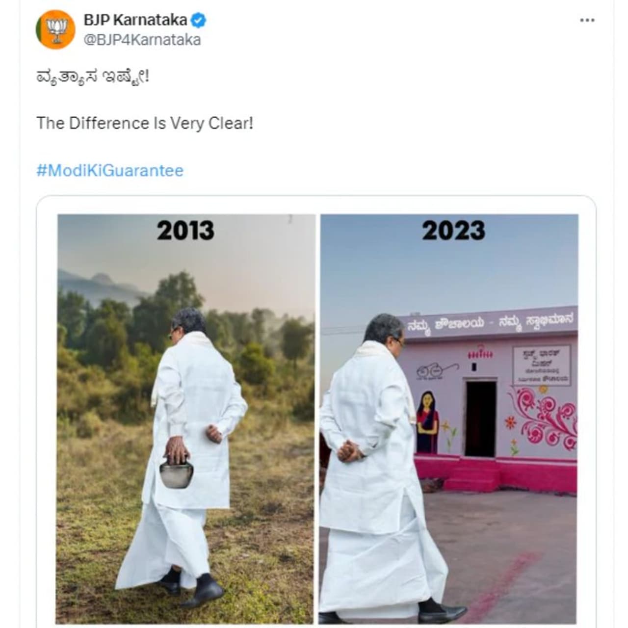 அவரைத் தொடர்ந்து அவரது துணை முதல்வர் டி.கே.சிவக்குமார் பகிர்ந்து மேலும் பரபரப்பை உண்டாக்கினார். இதற்கு பாஜக உடனடியாக பதில் அளித்தது. அவர்கள் வெளியிட்டுள்ள பதிவில், சித்தராமையா 2013 இல் 'காலி சொம்பு' வைத்திருக்கும் எடிட் செய்யப்பட்ட படத்தையும், 2023 இல் ஒன்றும் இல்லாமல் இருக்கும் புகைப்படத்தை வெளியிட்டது.