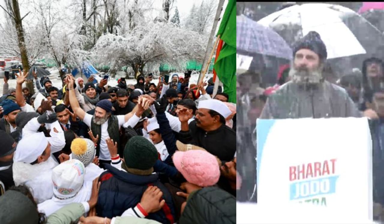 பாரத் ஜோடோ யாத்ரா நிறைவு!கொட்டும் பனிமழையிலும் காஷ்மீரில் காங்கிரஸ் பேரணி