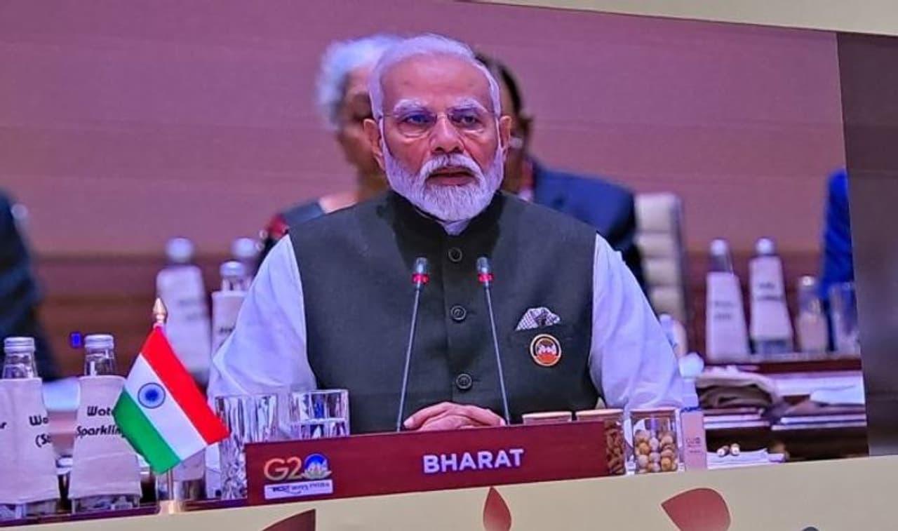 பிறகு விழாவில் பிரதமர் மோடி கலந்து கொண்டு உரையாற்றினார். ஜி 20 உச்சி மாநாட்டில் பிரதமர் மோடி அமர்ந்துள்ள பகுதிக்கு முன் பாரத் என பெயர் பலகை வைக்கப்பட்டுள்ளது. இந்தியா என்ற பெயர் இருக்கும் இடத்தில் பாரத் என்று பெயர்ப்பலகை வைத்திருப்பது பெரும் சர்ச்சையை ஏற்படுத்தி உள்ளது.
