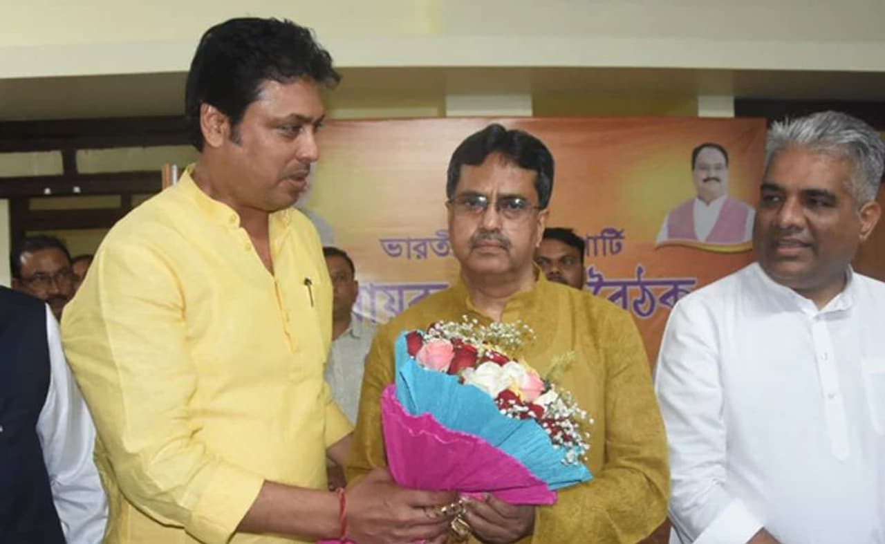 திரிபுரா முதல்வர் பிப்லப் குமார் தேப் ராஜினாமா செய்த சில மணி நேரங்களுக்குப் பிறகு, அவருக்குப் பதிலாக அம்மாநில பாஜக தலைவர் மாணிக் சாஹாவை புதிய முதலமைச்சராக பாஜக நியமித்துள்ளது.